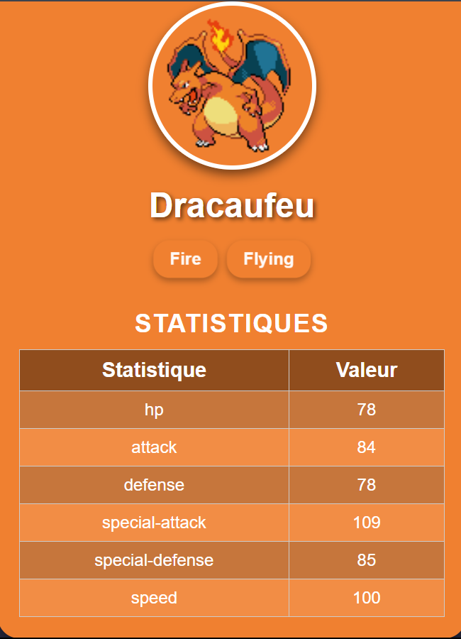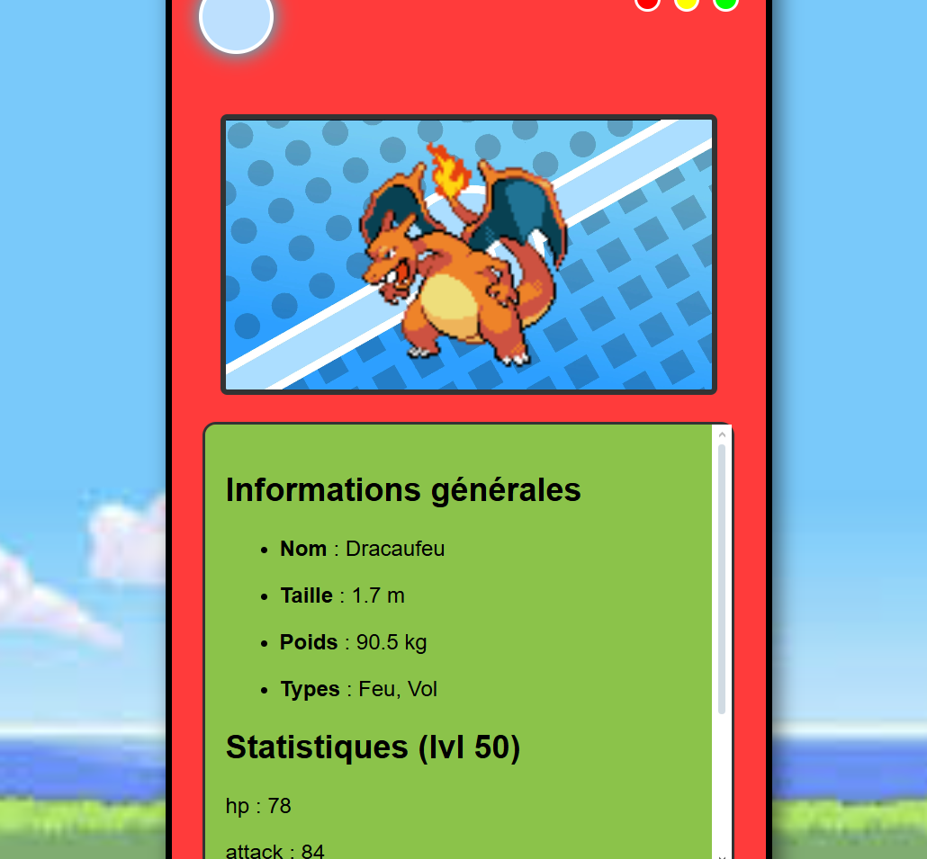 | Interface graphique encore simple. | Ajouter plus d’interactions ou une navigation multi-Pokémon. |